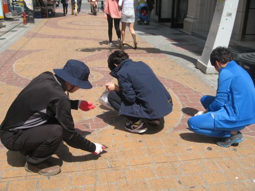 길바닥의 껌제거를 열심히 하고 왔습니다.