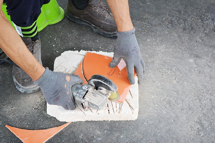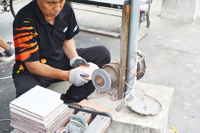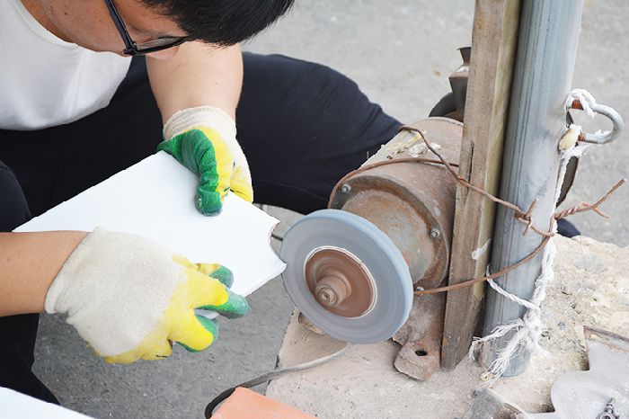 건설일용근로자 기능향상사업 타일 가공실습 교육중 사진입니다.