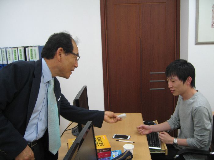 교장선생님께서 훈련생들 격려차 찹쌀떡을 나누었습니다.,
