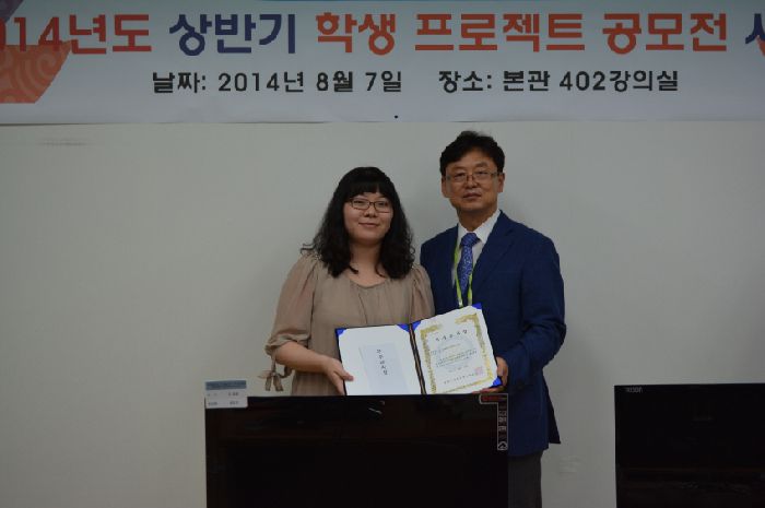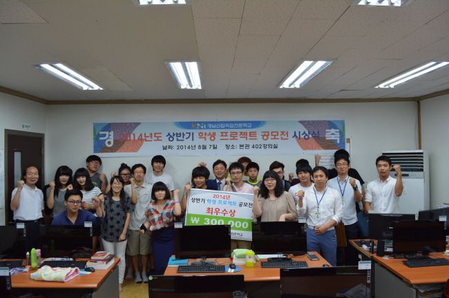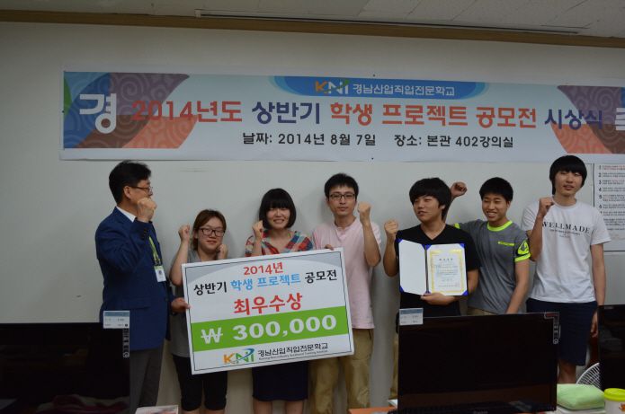 2014년 7월 24일 총 8개팀이 참석한 상반기 과정별 교내 공모전 결과가 발표되어 8월7일 PM 17:00 시상식을 가졌습니다.