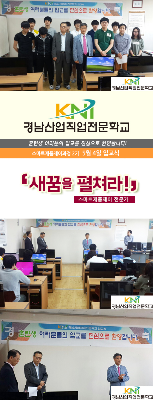 "훈련생 여러분! 경남산업직업전문학교 입교를 진심으로 환영합니다."