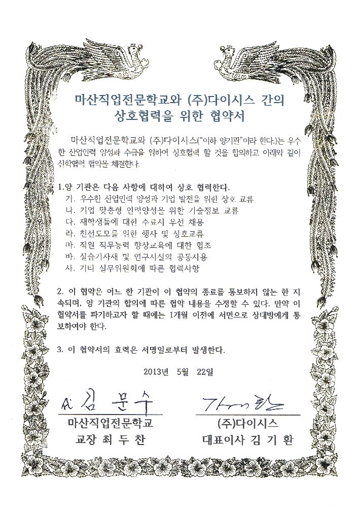 우리 학교랑 협약을 맺었습니다.