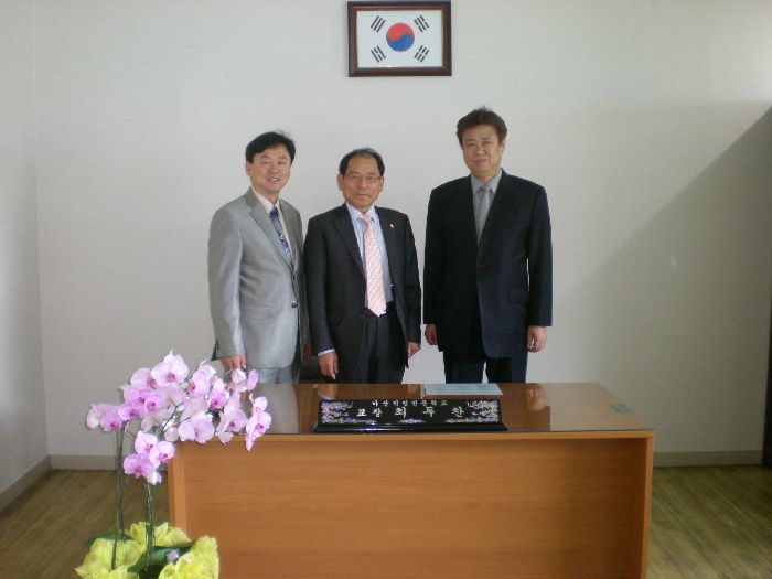 두분과 최두찬 교장 선생님, 김문수 교학처장과 환담을 나누셨으며, 우리 학생들의 해외(일본) 취업과 아울러 국내 기업체 취업을 위해 상호협력 하기로 협의하였습니다.