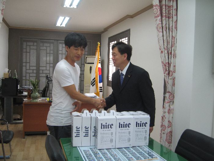 "전통곰탕"에서 우리학교에 시원한 맥주를 기증해주셨습니다.